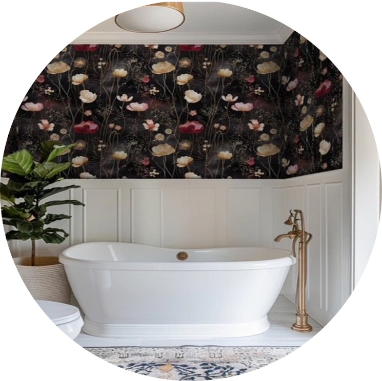 Look for moisture-resistant or waterproof wallpaper, especially in areas prone to splashing and humidity like showers and sinks. Vinyl and fabric-backed vinyl wallpapers are popular choices.