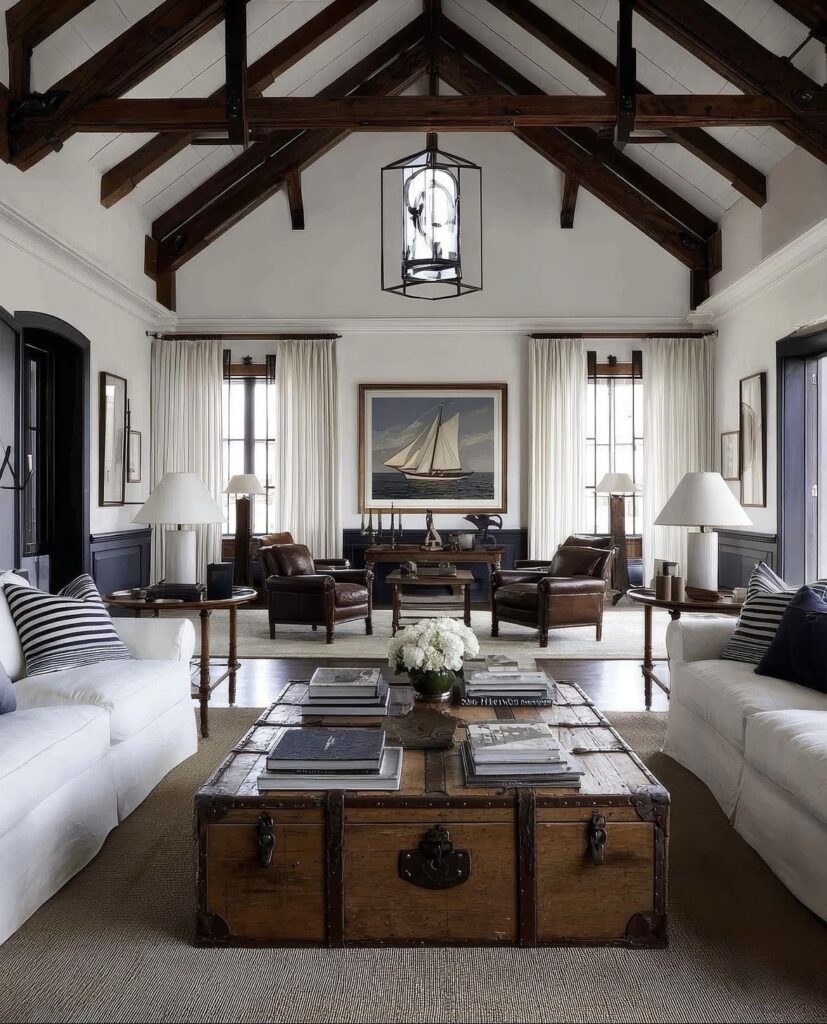 Consider the aesthetic possibilities of blending these two worlds. A space that perfectly captures this synergy might feature exposed wooden beams and rich leather armchairs, providing that essential cabin-in-the-woods feel. This can be elegantly contrasted with light, airy slipcovered sofas and a striking nautical painting of a sailboat, bringing the spirit of the water right to your hearthside. The combination creates a sophisticated yet comfortable environment where every element tells a story of adventure and tranquility.