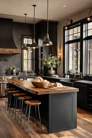 The kitchen pictured showcases a design that perfectly captures a contemporary trend: the blend of rustic charm with sophisticated, clean lines. This “modern farmhouse” aesthetic, with its moody black cabinetry, industrial pendant lighting, and a striking live-edge wooden island top, is a style that resonates deeply with the spirit of mountain living found in West Jefferson, NC.