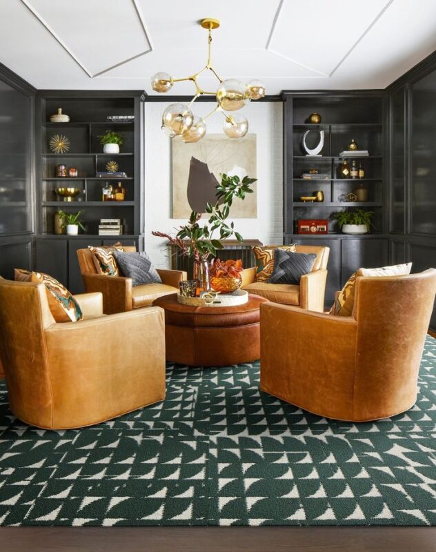 – **Angled**: In square rooms, angle the chairs towards each other from the corners to create a dynamic and inviting conversational hub.