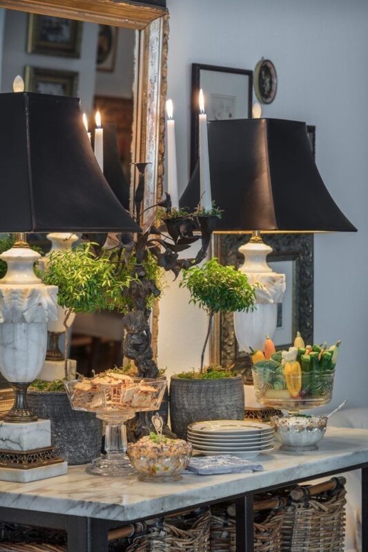 Use coffee table books, decorative bowls, and trays to fill surfaces and create curated displays.