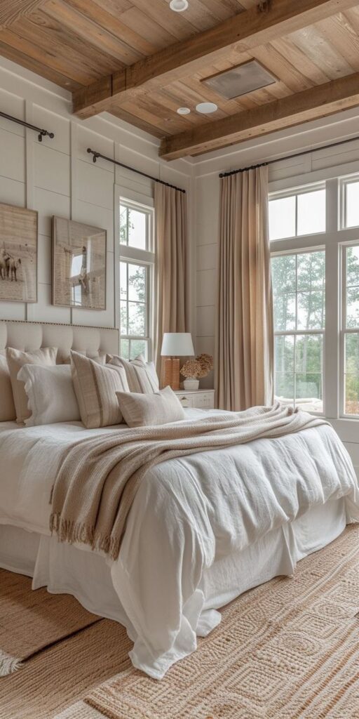 Combine different materials like soft bedding, wood furniture, and metallic decor to add depth and interest to the neutral palette.