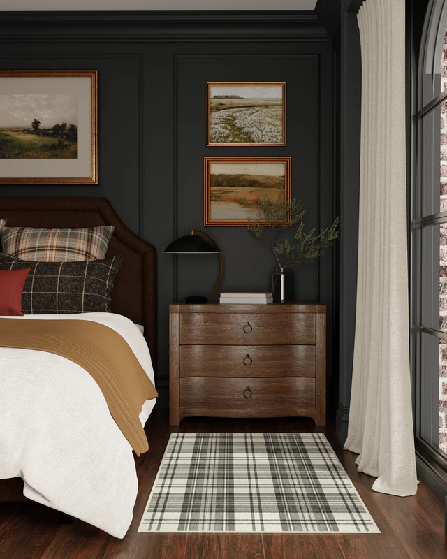 – **Create a Focal Point:** Incorporate a large-scale checkerboard pattern on a statement piece to ground the room. This could be a dramatic accent wall with painted checks or wallpaper behind the bed, or a large checkerboard area rug under the bed.