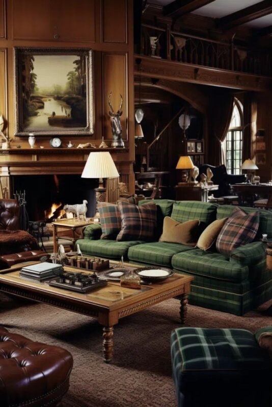 – **Leather Furniture**: Choose worn-in leather sofas and chairs to create a comfortable, lived-in feel.